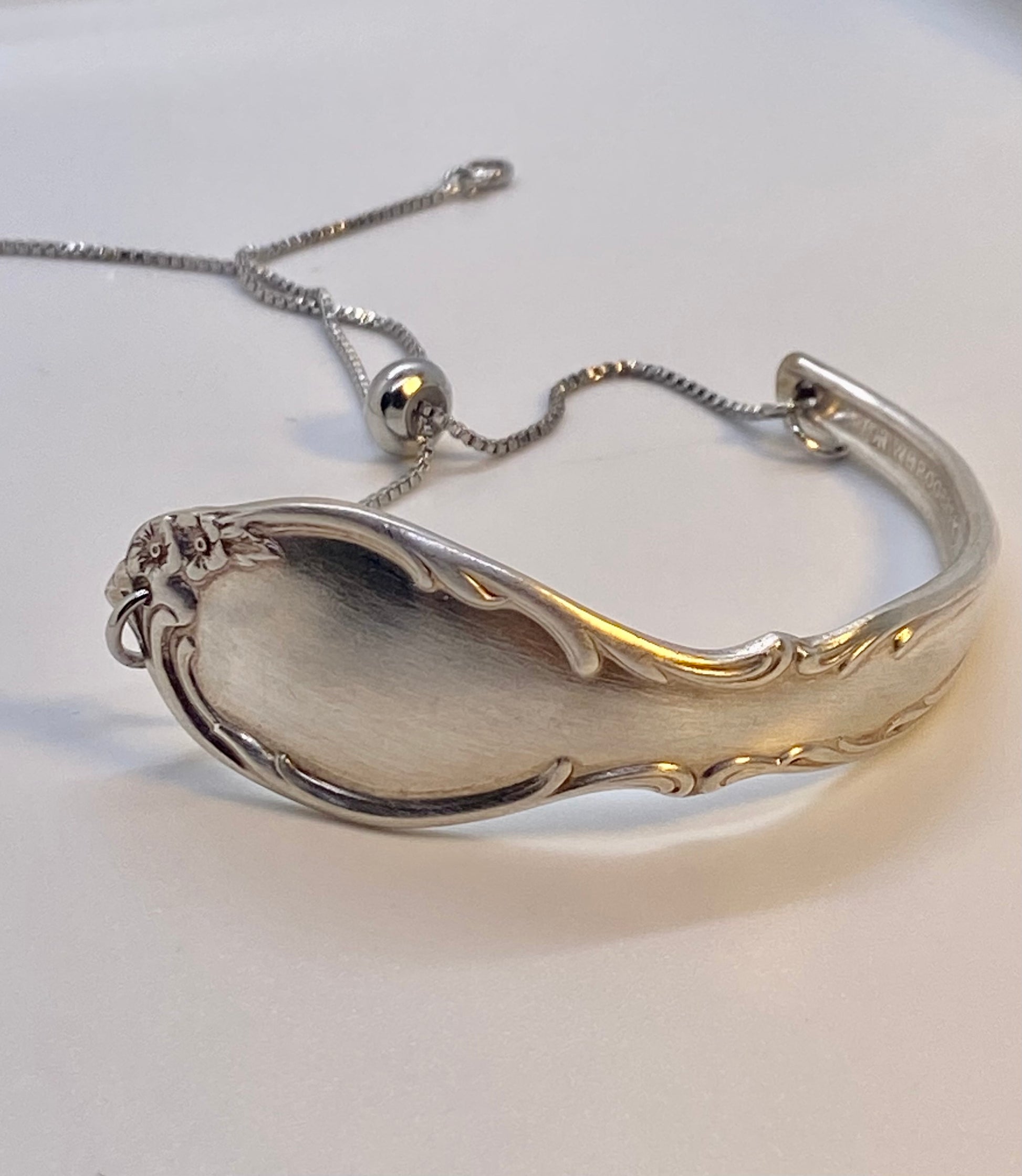 Made from vintage silver plate silverware. Single cuff with slip chain