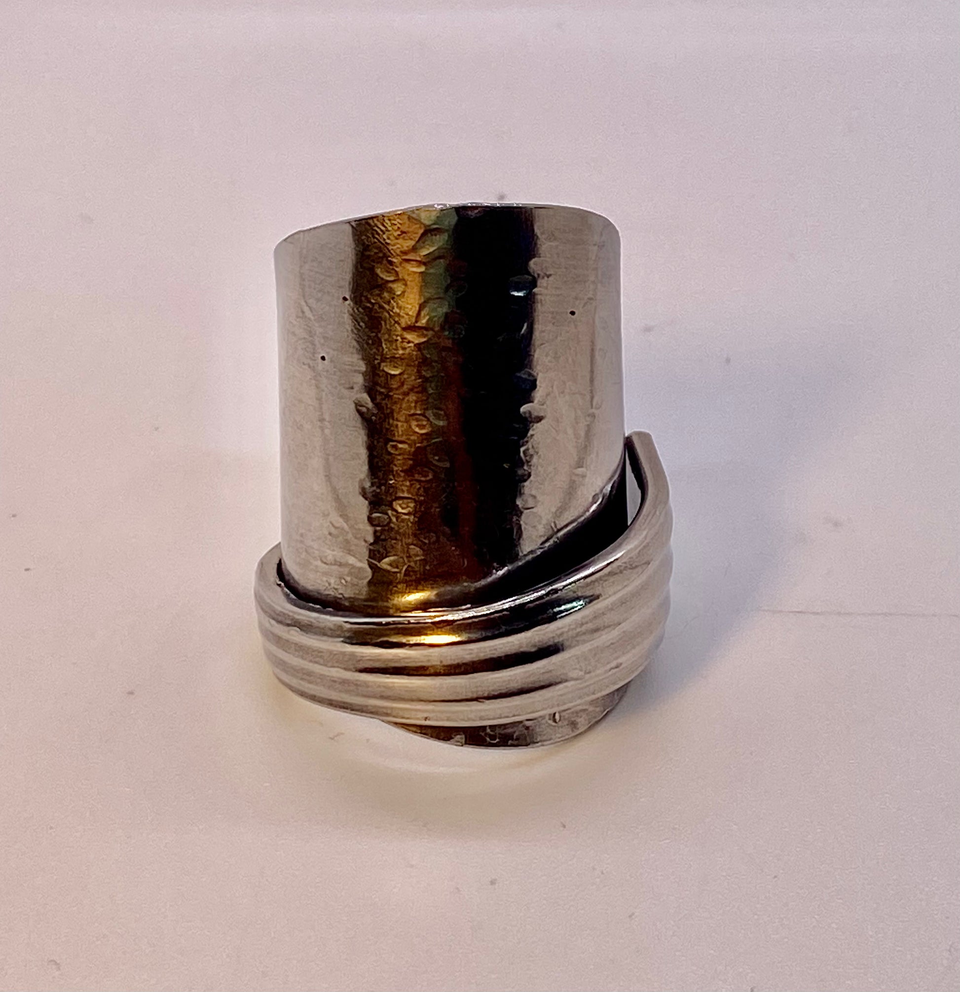 This is a really big bold ring made from vintage silver plate spoon bowl, Textured- Item 25